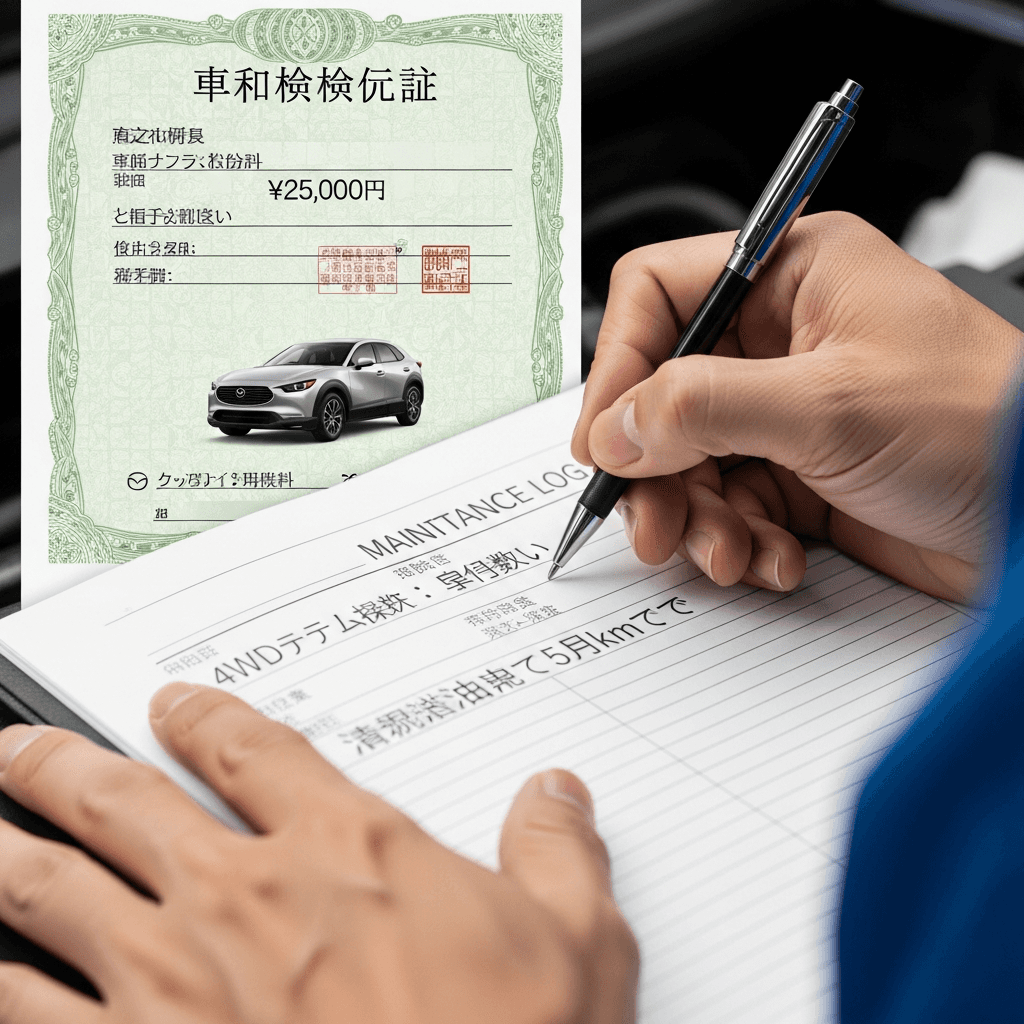 CX-30のようなSUVは4WD性能が価値の源泉。4WDシステム点検とデフオイル交換記録があれば「オフロード性能維持」と高評価され、+8~12万円の査定UPが期待できます。
