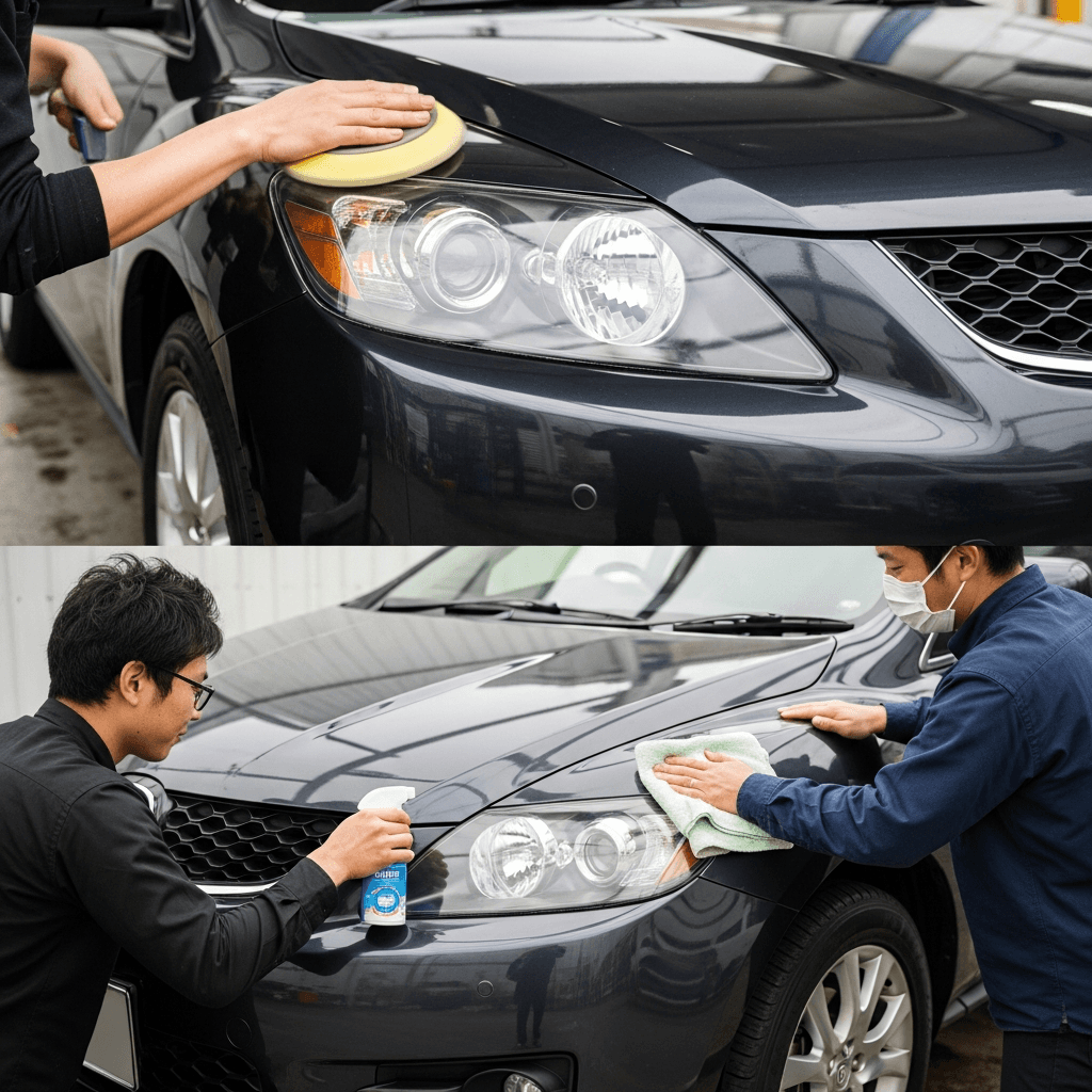 ヘッドライト黄ばみ除去+ボディ鉄粉除去で輝き復活!