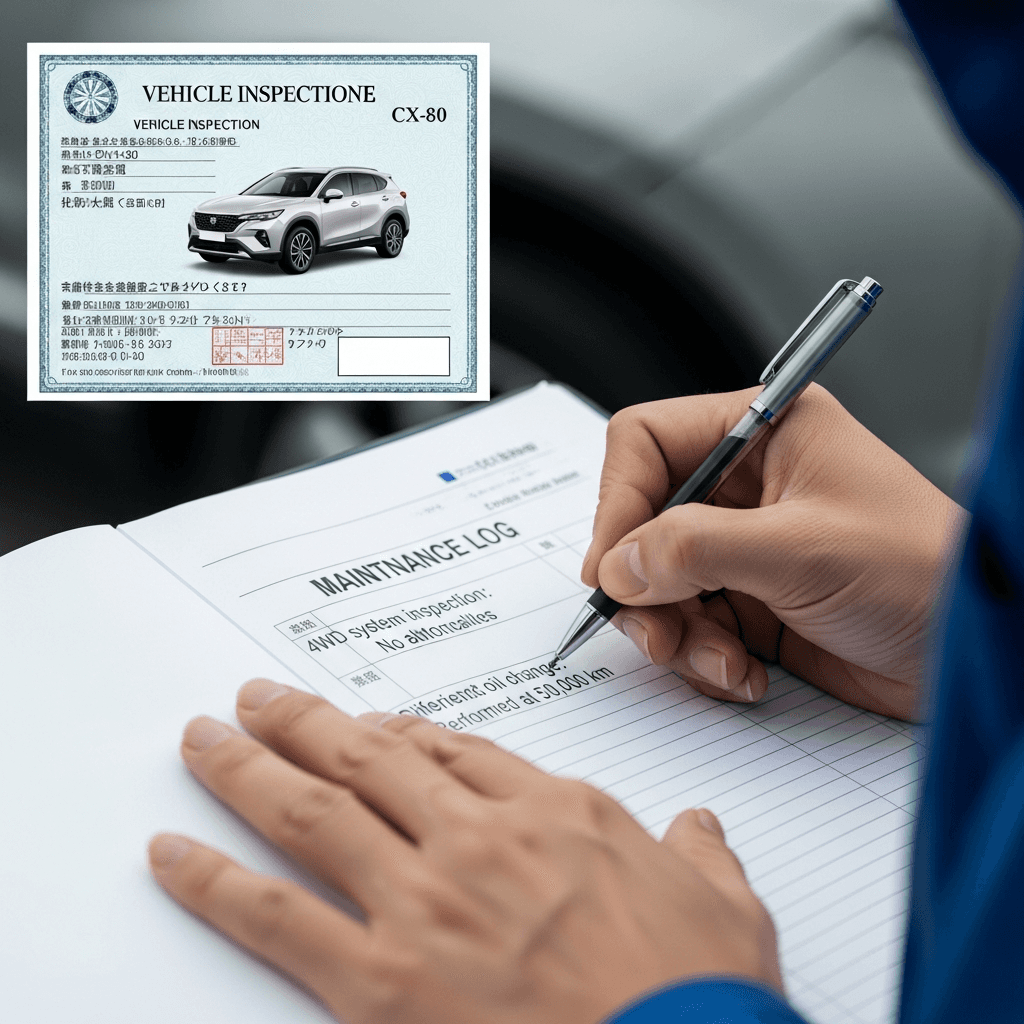 CX-80のようなSUVは4WD性能が価値の源泉。4WDシステム点検とデフオイル交換記録があれば「オフロード性能維持」と高評価され、+8~12万円の査定UPが期待できます。