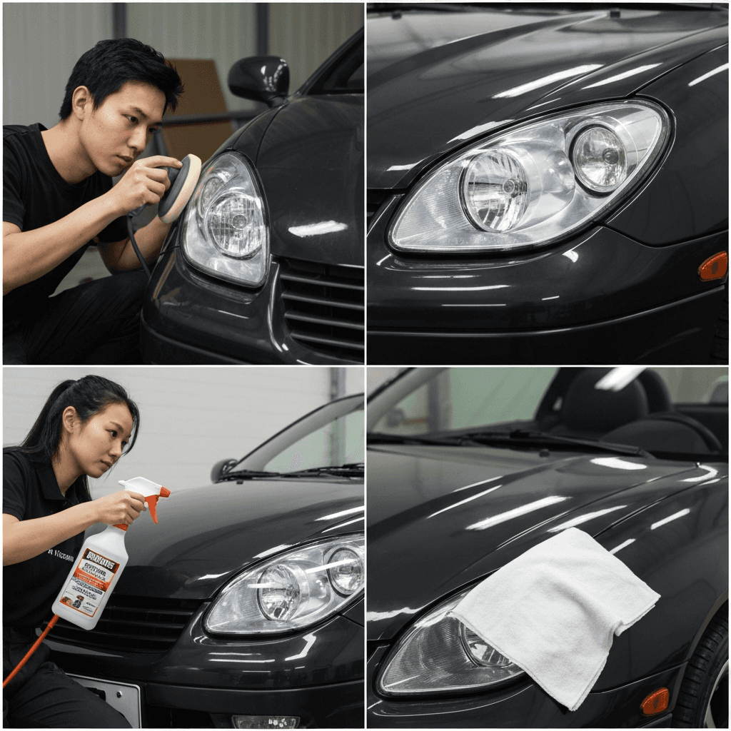 ヘッドライト黄ばみ除去+ボディ鉄粉除去で輝き復活!