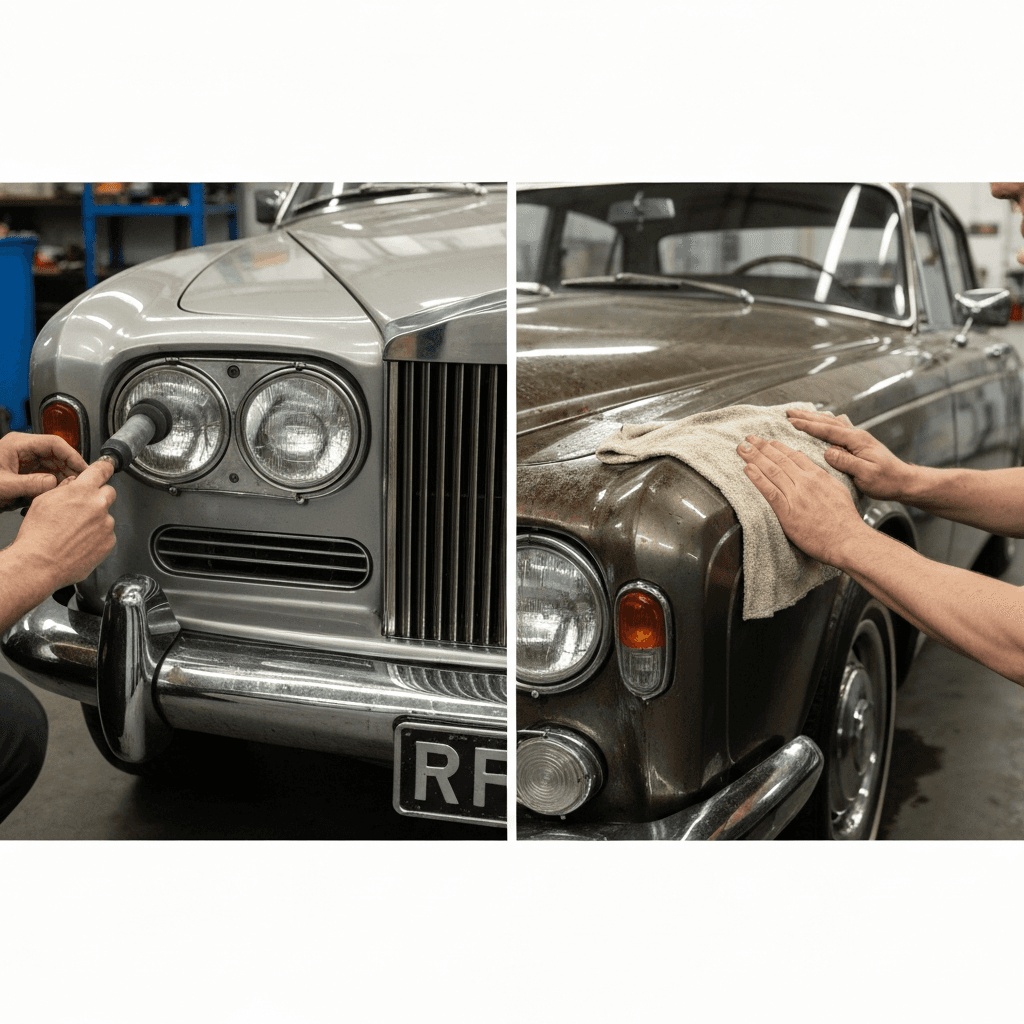 デボネアはヘッドライトの黄ばみとボディの鉄粉が第一印象を損ねます。研磨+鉄粉除去クリーナー+ワックスで輝きを取り戻せば「程度良好」と判断され+4~7万円の効果。
