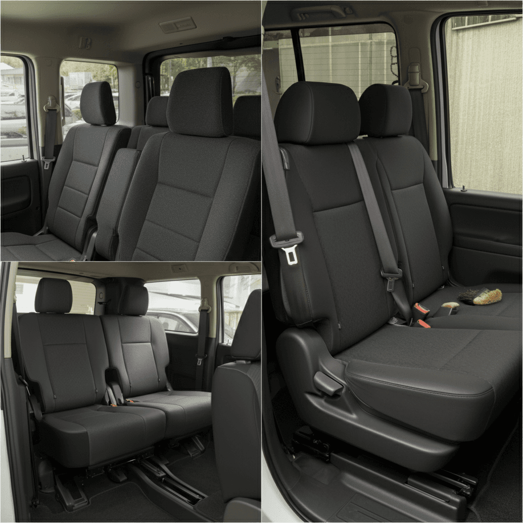 デリカカーゴは大家族利用が多く、3列目シートの汚れ・シミが査定マイナス要因。専用クリーナーで徹底清掃し、消臭スプレーで臭いゼロにすれば「禁煙・丁寧使用」の印象で+6~9万円UP。
