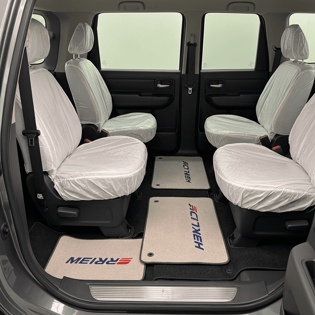 純正フロアマット全席分と純正シートカバーが揃っていれば「内装ダメージ最小限」の証明に。特にデリカD:2は内装劣化が査定に直結するため+4~7万円の評価UP。