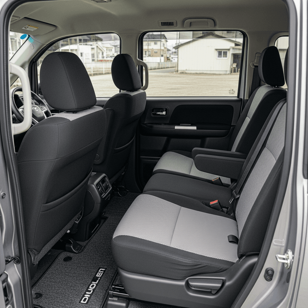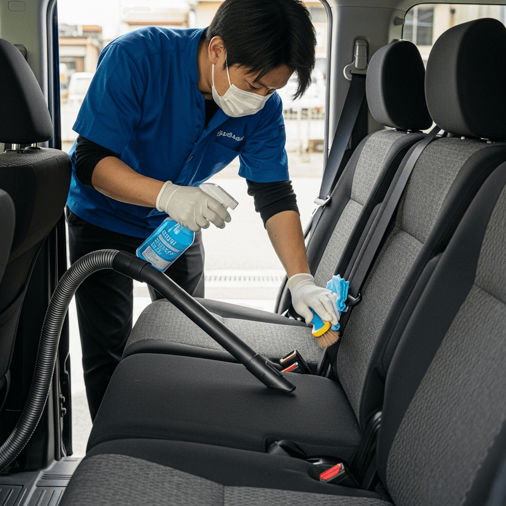 デリカミニは大家族利用が多く、3列目シートの汚れ・シミが査定マイナス要因。専用クリーナーで徹底清掃し、消臭スプレーで臭いゼロにすれば「禁煙・丁寧使用」の印象で+6~9万円UP。