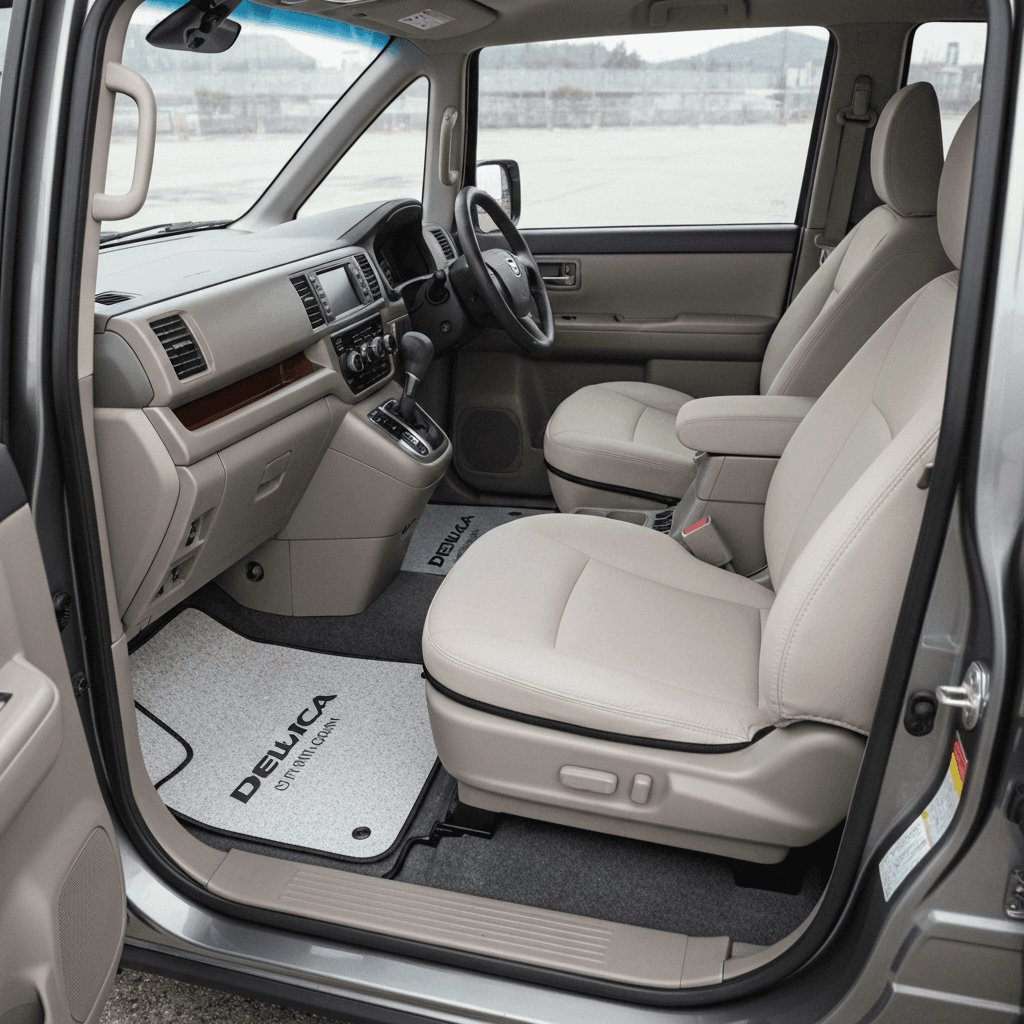 純正フロアマット全席分と純正シートカバーが揃っていれば「内装ダメージ最小限」の証明に。特にデリカスターワゴンは内装劣化が査定に直結するため+4~7万円の評価UP。