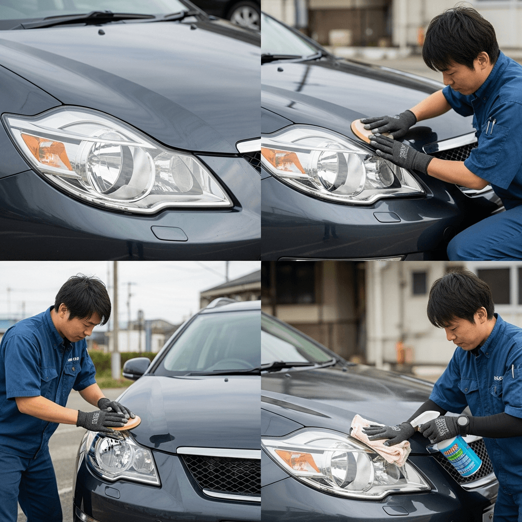 ヘッドライト黄ばみ除去+ボディ鉄粉除去で輝き復活!