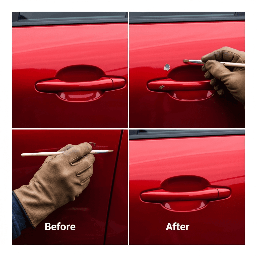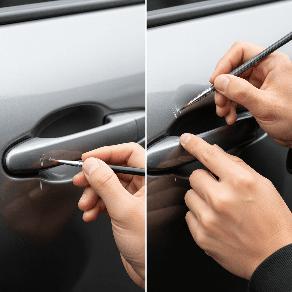 デミオのような実用車は日常使いの小傷が多い。ドアノブ周辺やバンパー角の擦り傷を純正色タッチペンで目立たなくするだけで「丁寧に扱われた車」に見え+3~5万円の効果。