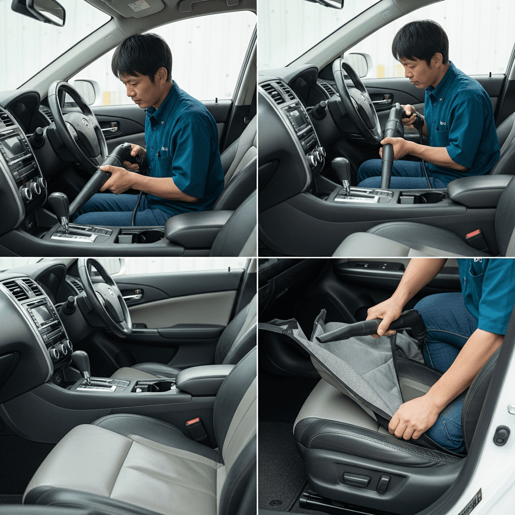 ディアマンテは第一印象が査定の8割を決めます。シート隙間のゴミ除去、マット洗浄、樹脂パーツ艶出しで新車級の清潔感に。特に臭いゼロなら「禁煙車」扱いで+5~8万円UP。