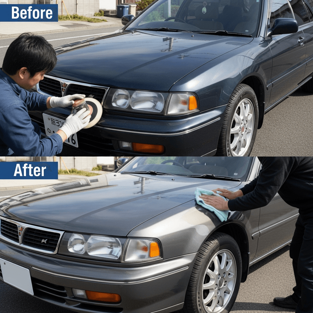ディアマンテワゴンはヘッドライトの黄ばみとボディの鉄粉が第一印象を損ねます。研磨+鉄粉除去クリーナー+ワックスで輝きを取り戻せば「程度良好」と判断され+4~7万円の効果。
