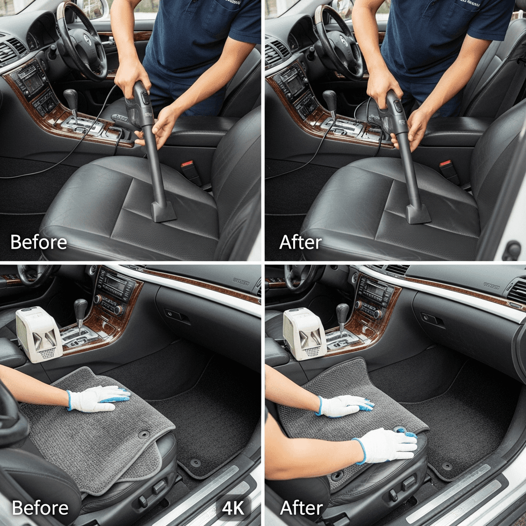 ディアマンテワゴンは第一印象が査定の8割を決めます。シート隙間のゴミ除去、マット洗浄、樹脂パーツ艶出しで新車級の清潔感に。特に臭いゼロなら「禁煙車」扱いで+5~8万円UP。