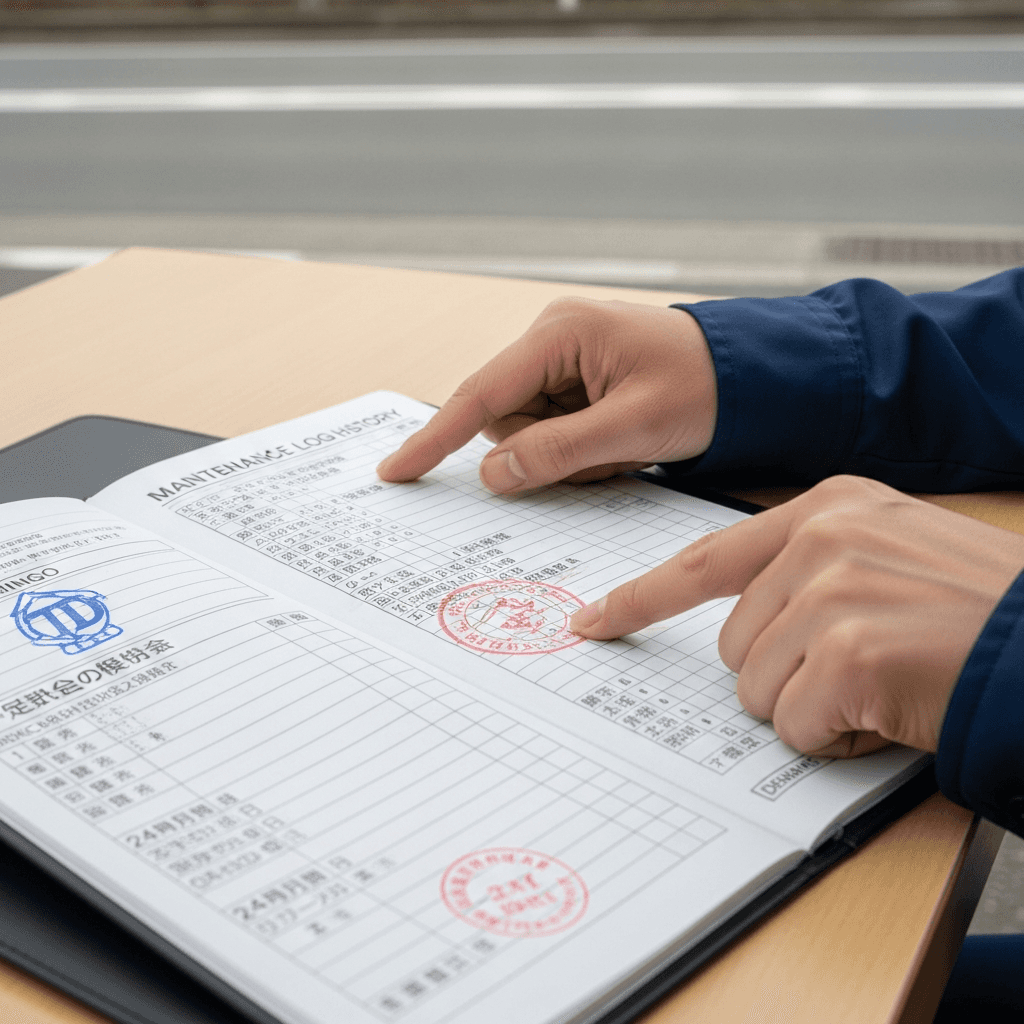 ドミンゴの整備記録簿に定期点検(12ヶ月・24ヶ月)の履歴が全て記載されていれば「管理の行き届いた車」と高評価。特にエンジンオイル交換履歴は重要で+6~9万円の効果。