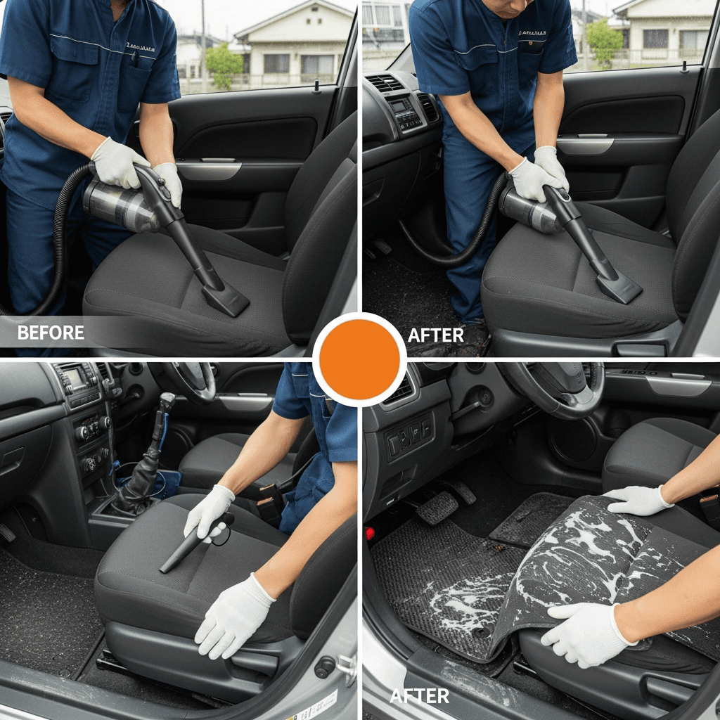 デュアリスは第一印象が査定の8割を決めます。シート隙間のゴミ除去、マット洗浄、樹脂パーツ艶出しで新車級の清潔感に。特に臭いゼロなら「禁煙車」扱いで+5~8万円UP。