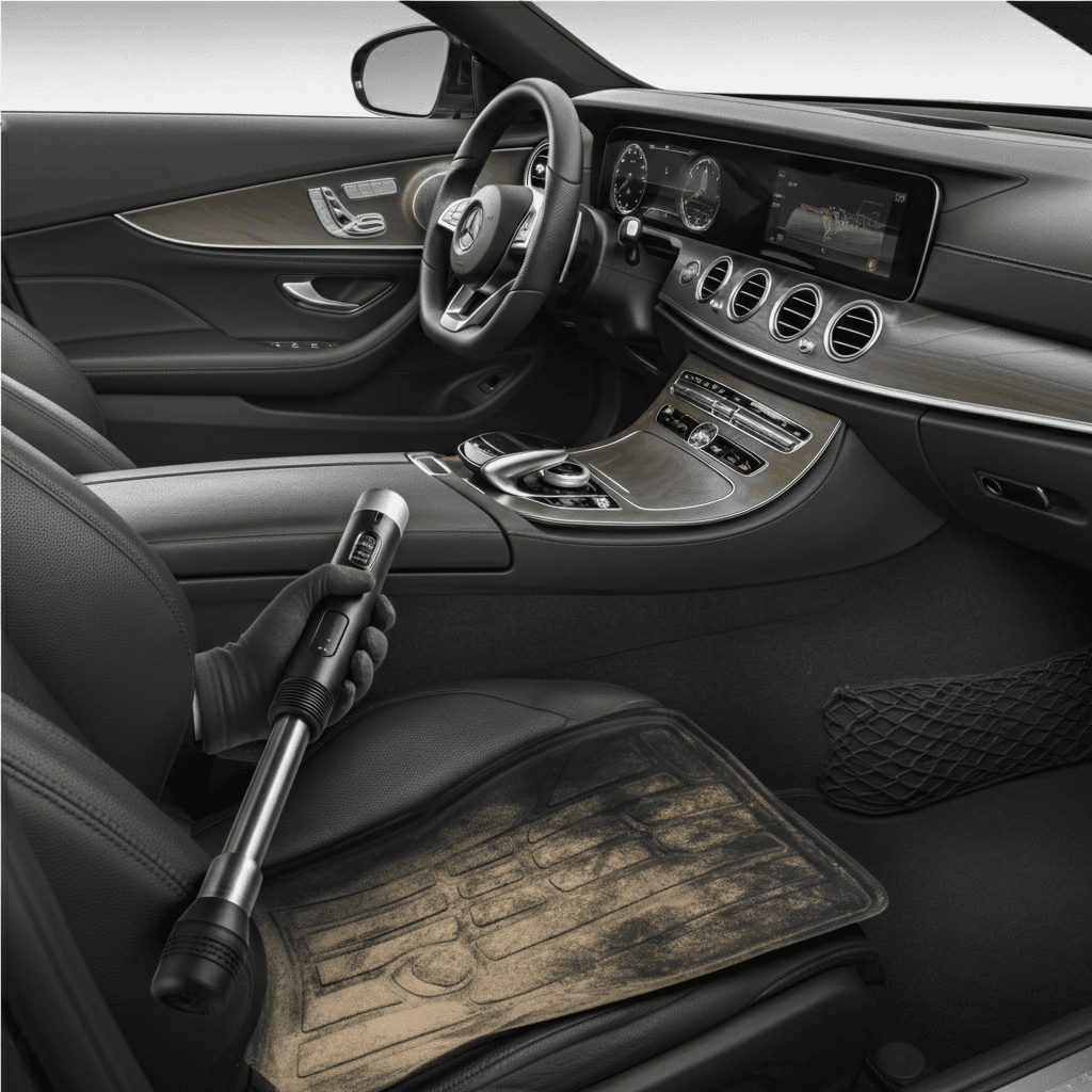 Eクラスクーペは第一印象が査定の8割を決めます。シート隙間のゴミ除去、マット洗浄、樹脂パーツ艶出しで新車級の清潔感に。特に臭いゼロなら「禁煙車」扱いで+5~8万円UP。