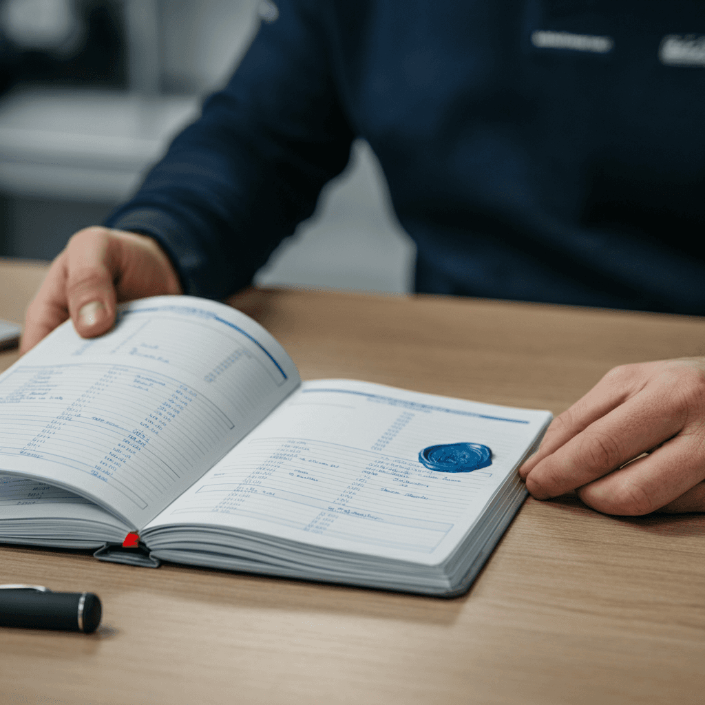 Eクラスワゴンの整備記録簿に定期点検(12ヶ月・24ヶ月)の履歴が全て記載されていれば「管理の行き届いた車」と高評価。特にエンジンオイル交換履歴は重要で+6~9万円の効果。