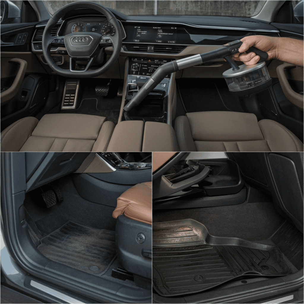e-tronは第一印象が査定の8割を決めます。シート隙間のゴミ除去、マット洗浄、樹脂パーツ艶出しで新車級の清潔感に。特に臭いゼロなら「禁煙車」扱いで+5~8万円UP。
