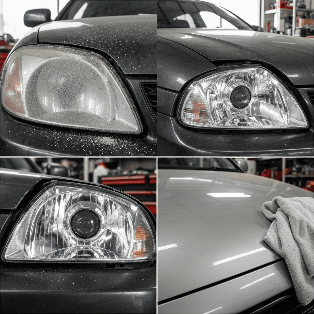 ヘッドライト黄ばみ除去+ボディ鉄粉除去で輝き復活!