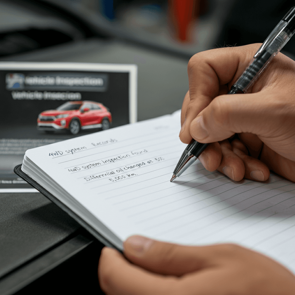 エクリプスクロスのようなSUVは4WD性能が価値の源泉。4WDシステム点検とデフオイル交換記録があれば「オフロード性能維持」と高評価され、+8~12万円の査定UPが期待できます。