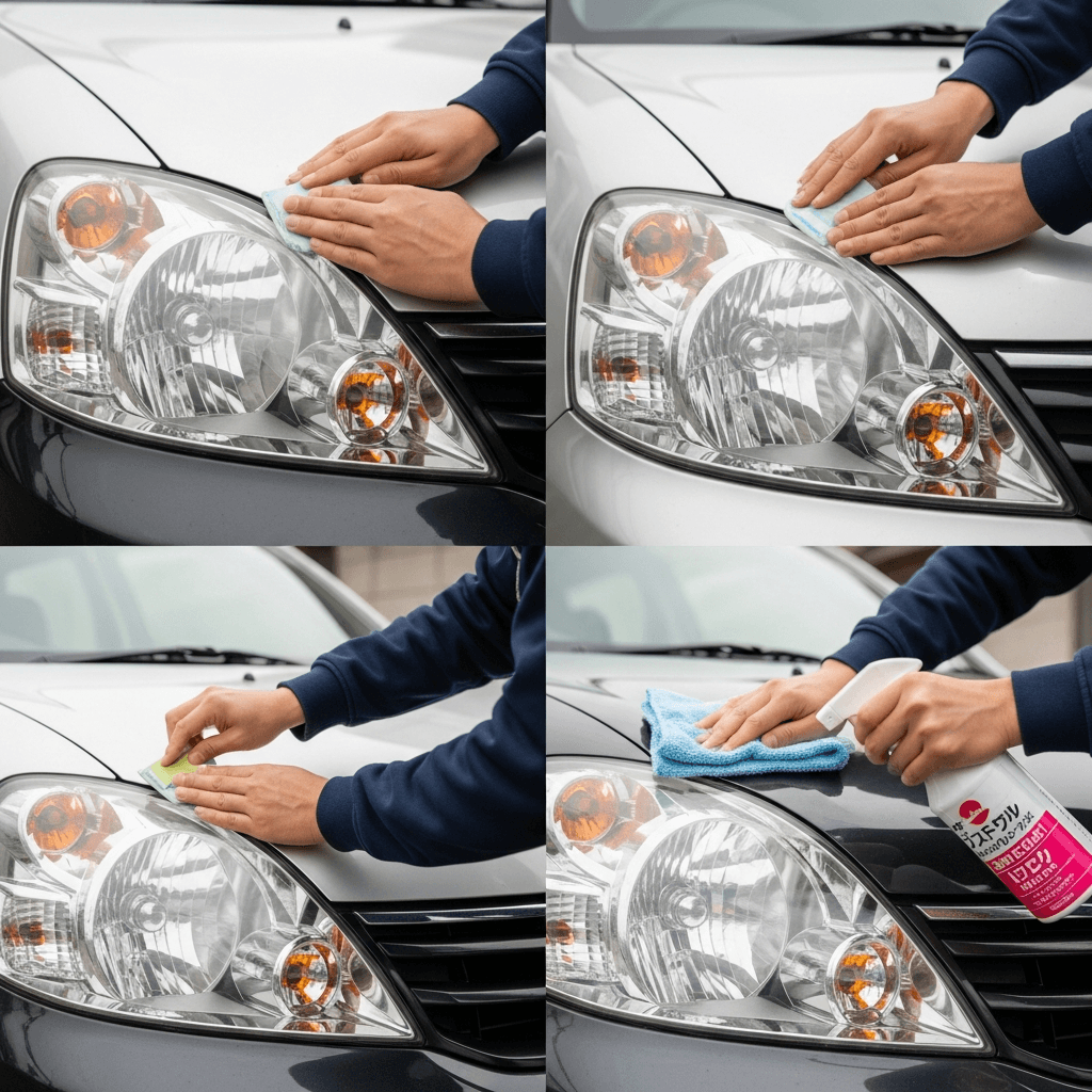 ヘッドライト黄ばみ除去+ボディ鉄粉除去で輝き復活!
