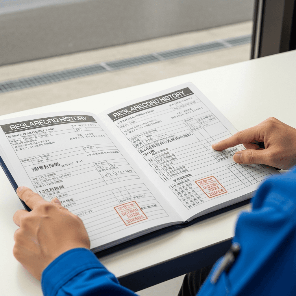 eKカスタムの整備記録簿に定期点検(12ヶ月・24ヶ月)の履歴が全て記載されていれば「管理の行き届いた車」と高評価。特にエンジンオイル交換履歴は重要で+6~9万円の効果。