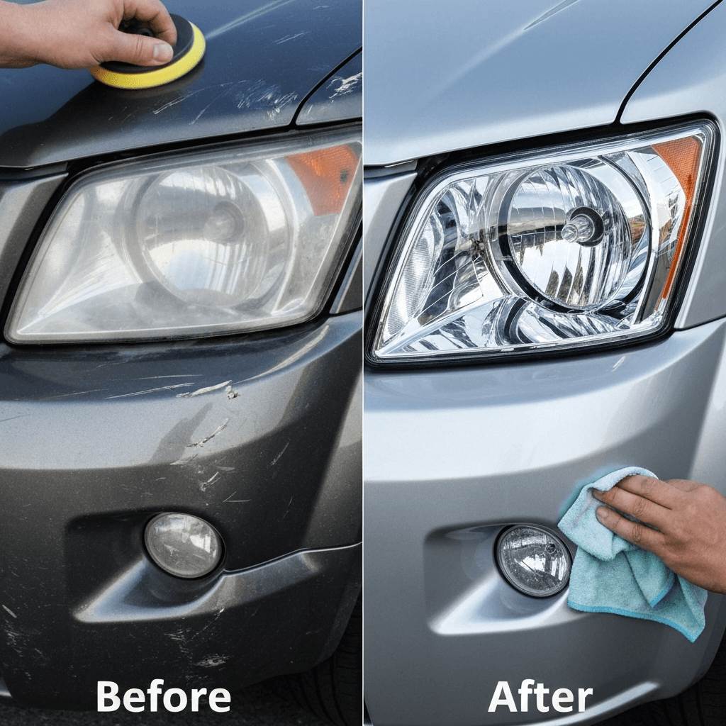 ヘッドライト黄ばみ除去+ボディ鉄粉除去で輝き復活!