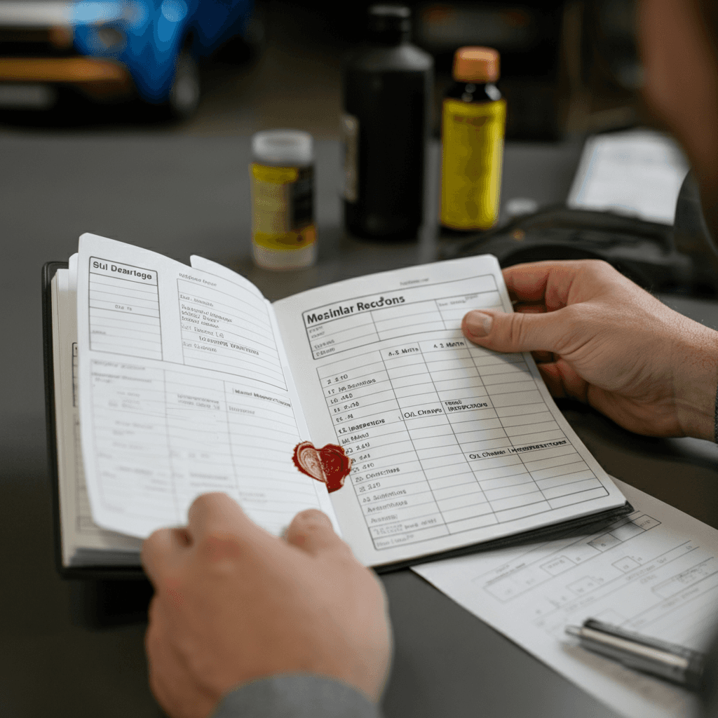 エレメントの整備記録簿に定期点検(12ヶ月・24ヶ月)の履歴が全て記載されていれば「管理の行き届いた車」と高評価。特にエンジンオイル交換履歴は重要で+6~9万円の効果。