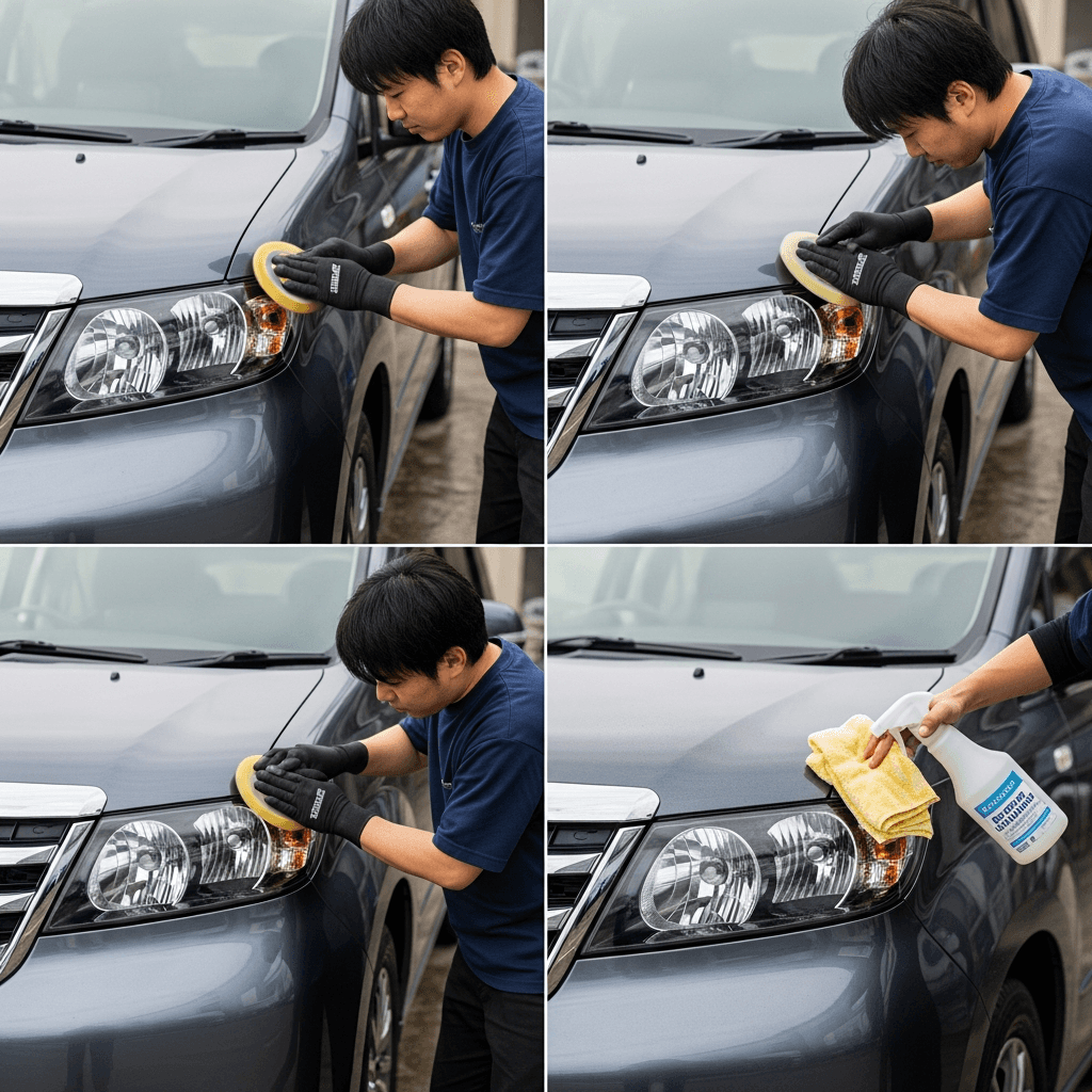 ヘッドライト黄ばみ除去+ボディ鉄粉除去で輝き復活!