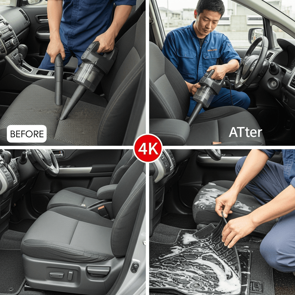 エリシオンは第一印象が査定の8割を決めます。シート隙間のゴミ除去、マット洗浄、樹脂パーツ艶出しで新車級の清潔感に。特に臭いゼロなら「禁煙車」扱いで+5~8万円UP。