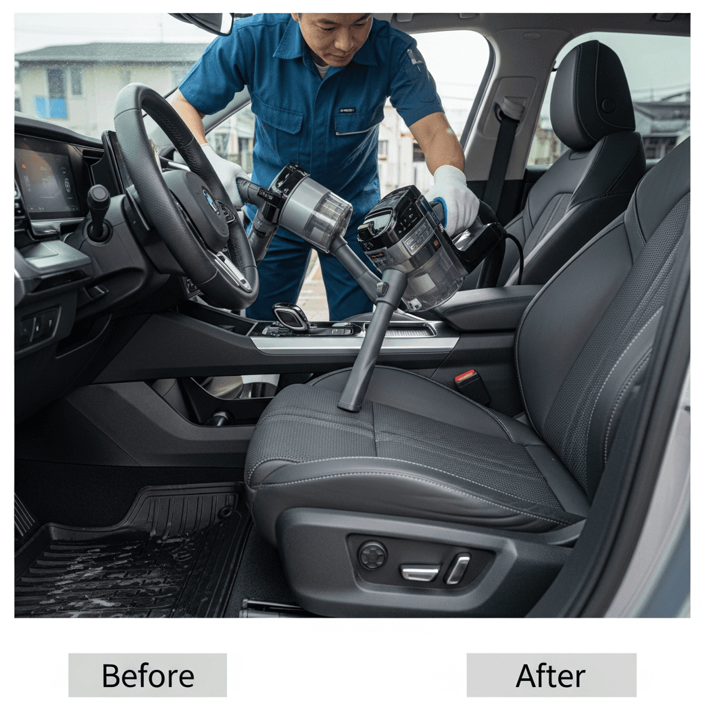 EQAは第一印象が査定の8割を決めます。シート隙間のゴミ除去、マット洗浄、樹脂パーツ艶出しで新車級の清潔感に。特に臭いゼロなら「禁煙車」扱いで+5~8万円UP。