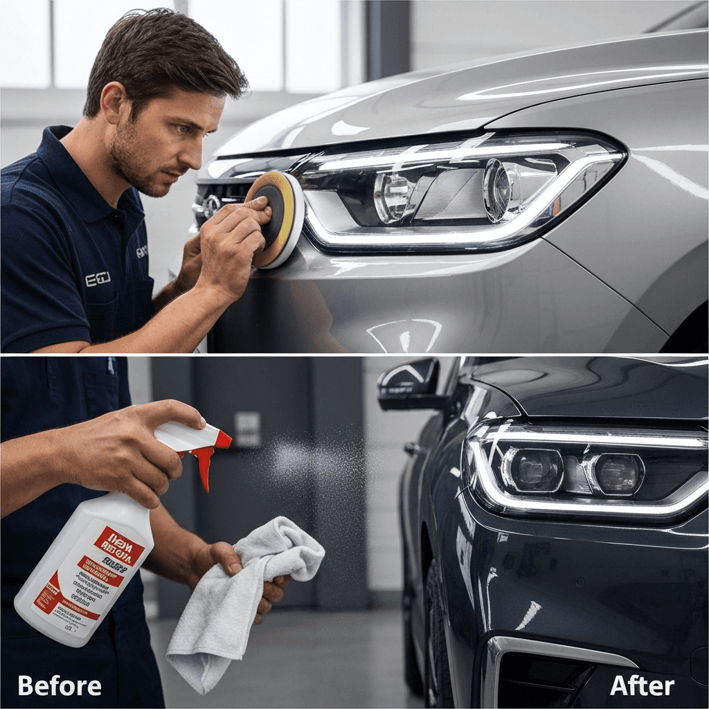ヘッドライト黄ばみ除去+ボディ鉄粉除去で輝き復活!