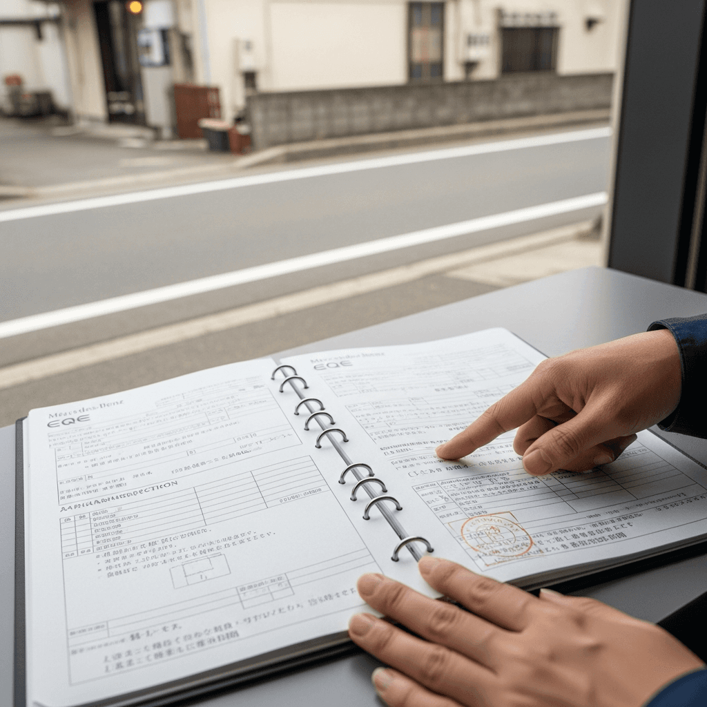 EQEの整備記録簿に定期点検(12ヶ月・24ヶ月)の履歴が全て記載されていれば「管理の行き届いた車」と高評価。特にエンジンオイル交換履歴は重要で+6~9万円の効果。