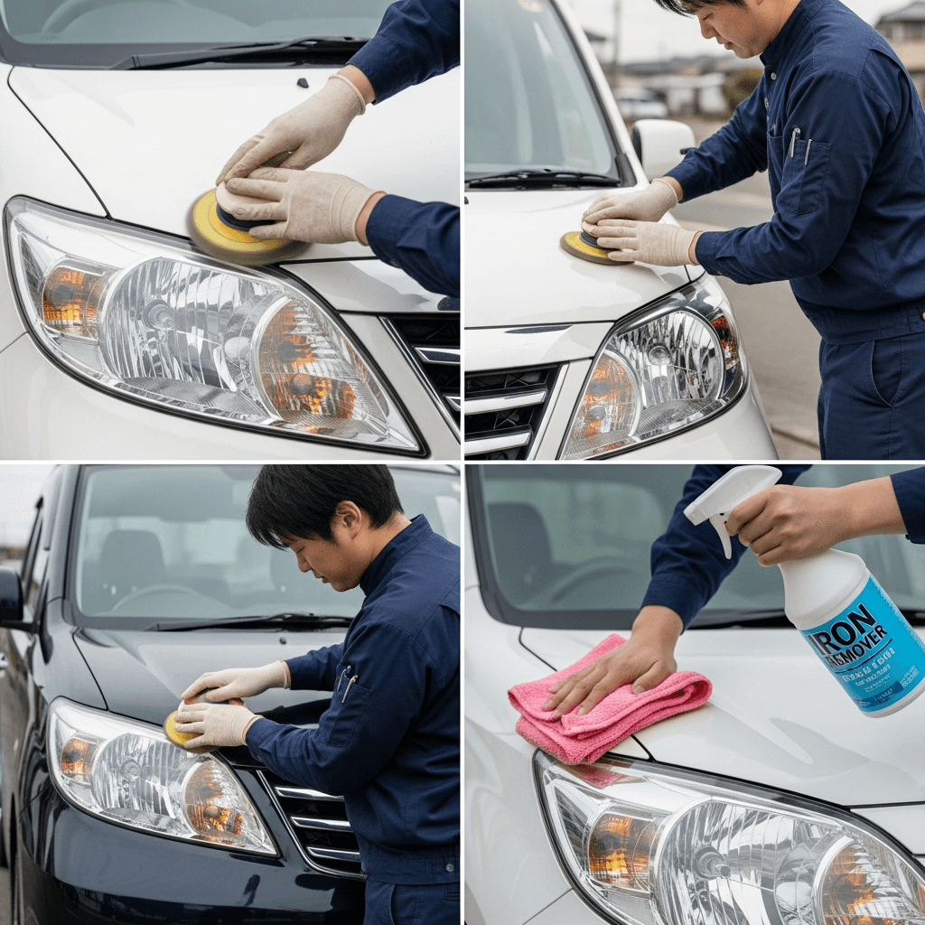 ヘッドライト黄ばみ除去+ボディ鉄粉除去で輝き復活!