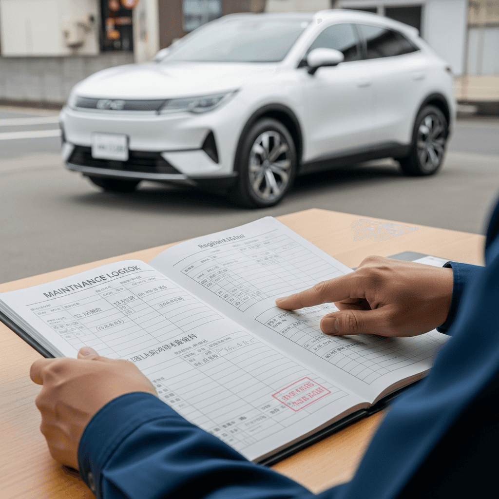 EQE SUVの整備記録簿に定期点検(12ヶ月・24ヶ月)の履歴が全て記載されていれば「管理の行き届いた車」と高評価。特にエンジンオイル交換履歴は重要で+6~9万円の効果。