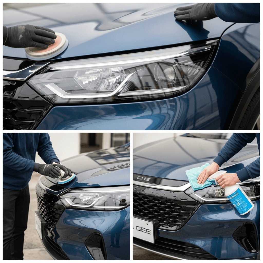 EQE SUVはヘッドライトの黄ばみとボディの鉄粉が第一印象を損ねます。研磨+鉄粉除去クリーナー+ワックスで輝きを取り戻せば「程度良好」と判断され+4~7万円の効果。