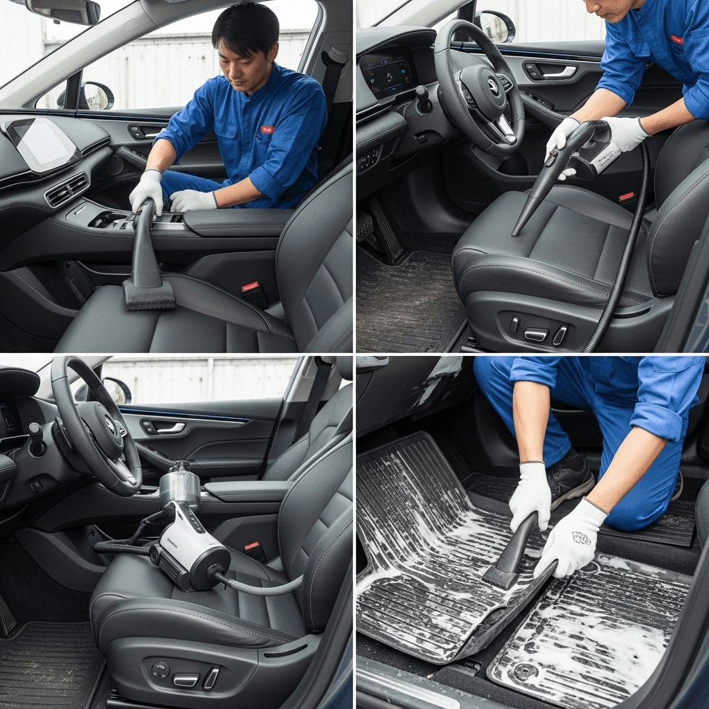 EQSは第一印象が査定の8割を決めます。シート隙間のゴミ除去、マット洗浄、樹脂パーツ艶出しで新車級の清潔感に。特に臭いゼロなら「禁煙車」扱いで+5~8万円UP。
