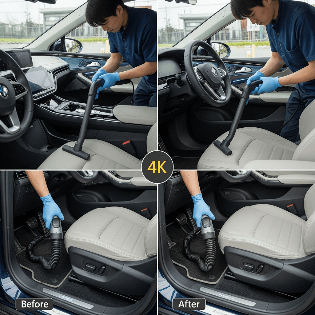EQS SUVは第一印象が査定の8割を決めます。シート隙間のゴミ除去、マット洗浄、樹脂パーツ艶出しで新車級の清潔感に。特に臭いゼロなら「禁煙車」扱いで+5~8万円UP。