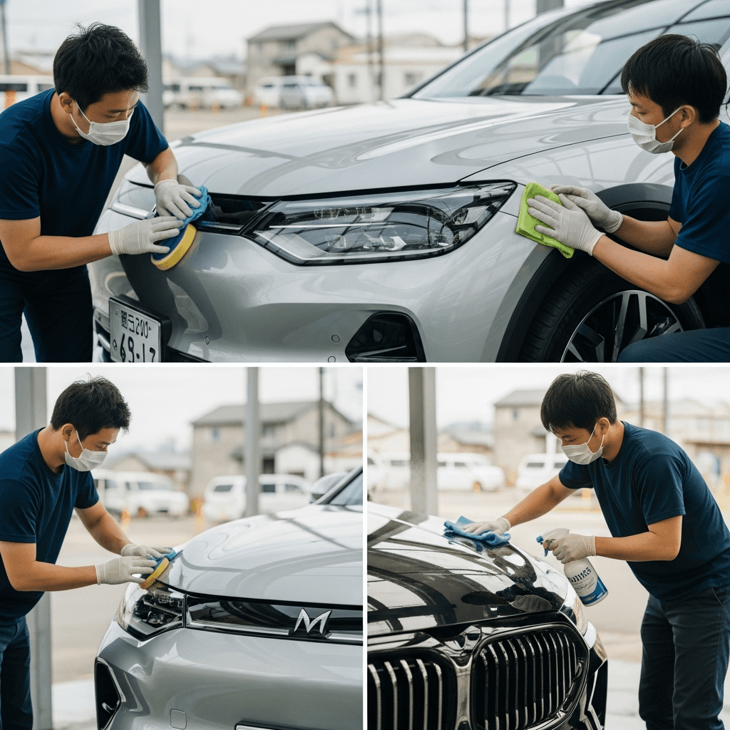 EQS SUVはヘッドライトの黄ばみとボディの鉄粉が第一印象を損ねます。研磨+鉄粉除去クリーナー+ワックスで輝きを取り戻せば「程度良好」と判断され+4~7万円の効果。