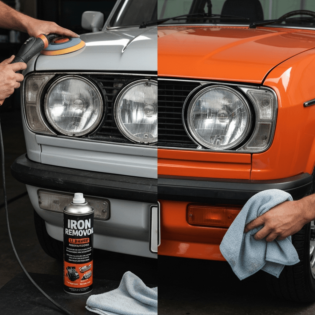 ヘッドライト黄ばみ除去+ボディ鉄粉除去で輝き復活!
