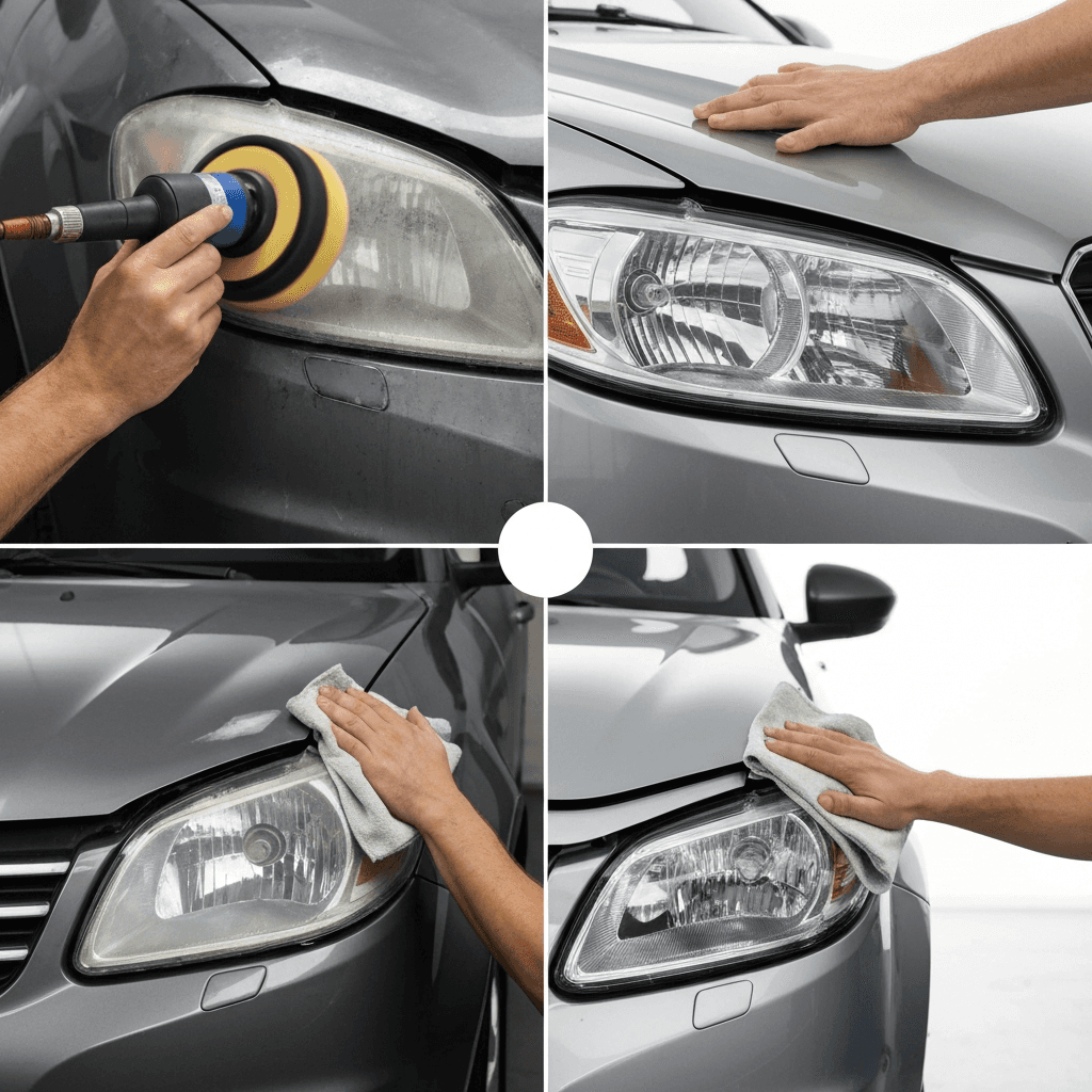ヘッドライト黄ばみ除去+ボディ鉄粉除去で輝き復活!