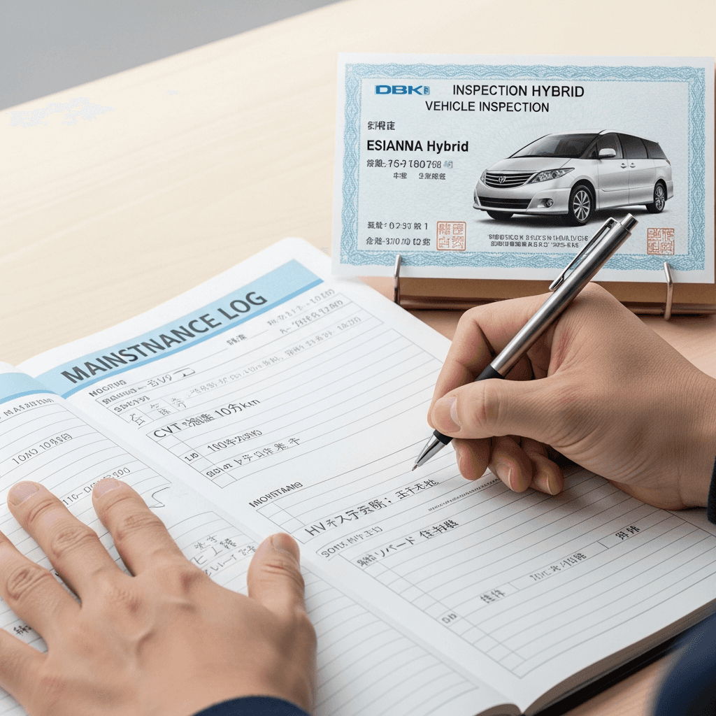 整備記録簿にCVTフルード交換やHVシステム診断の履歴を明記。特に「10万km時CVT交換済」「バッテリー冷却系点検済」の記載があれば査定士の信頼度が急上昇し、+6~10万円の価値創出が可能です。