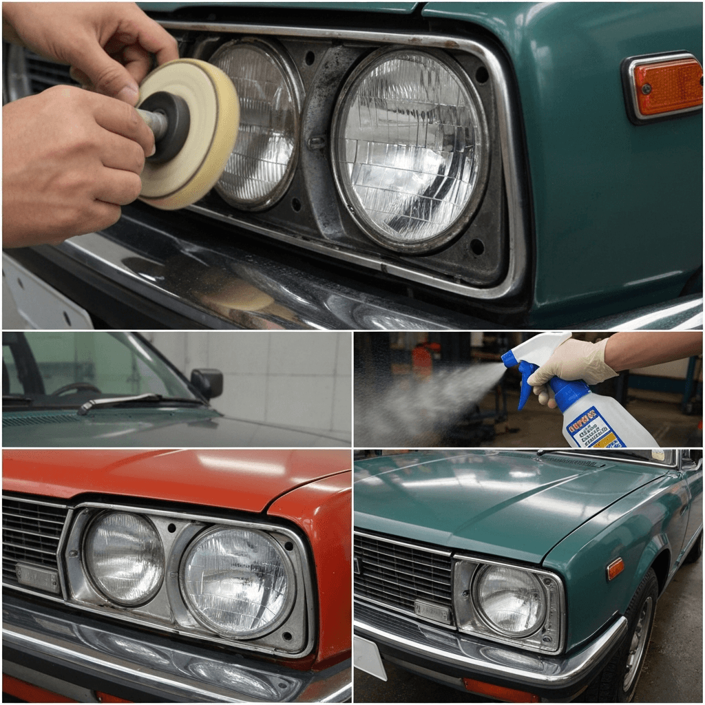エテルナサバはヘッドライトの黄ばみとボディの鉄粉が第一印象を損ねます。研磨+鉄粉除去クリーナー+ワックスで輝きを取り戻せば「程度良好」と判断され+4~7万円の効果。