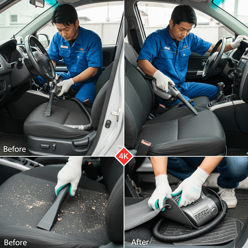ユーノス300は第一印象が査定の8割を決めます。シート隙間のゴミ除去、マット洗浄、樹脂パーツ艶出しで新車級の清潔感に。特に臭いゼロなら「禁煙車」扱いで+5~8万円UP。