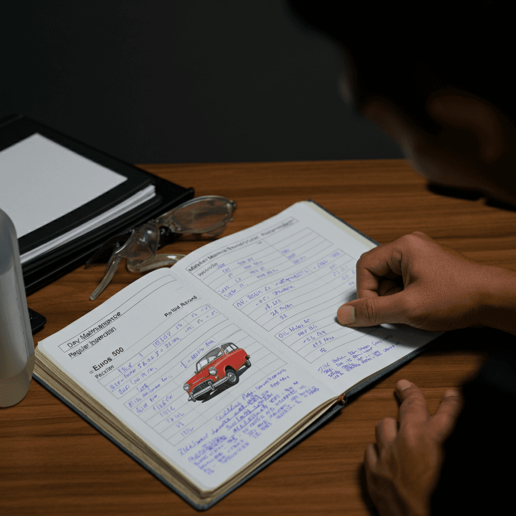 ユーノス500の整備記録簿に定期点検(12ヶ月・24ヶ月)の履歴が全て記載されていれば「管理の行き届いた車」と高評価。特にエンジンオイル交換履歴は重要で+6~9万円の効果。