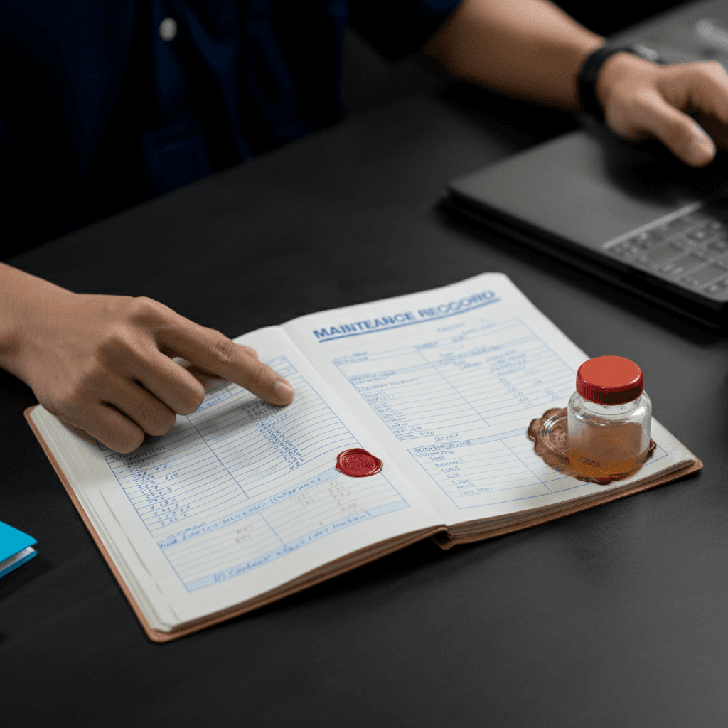 ユーノス800の整備記録簿に定期点検(12ヶ月・24ヶ月)の履歴が全て記載されていれば「管理の行き届いた車」と高評価。特にエンジンオイル交換履歴は重要で+6~9万円の効果。