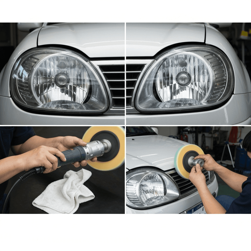 ヘッドライト黄ばみ除去+ボディ鉄粉除去で輝き復活!