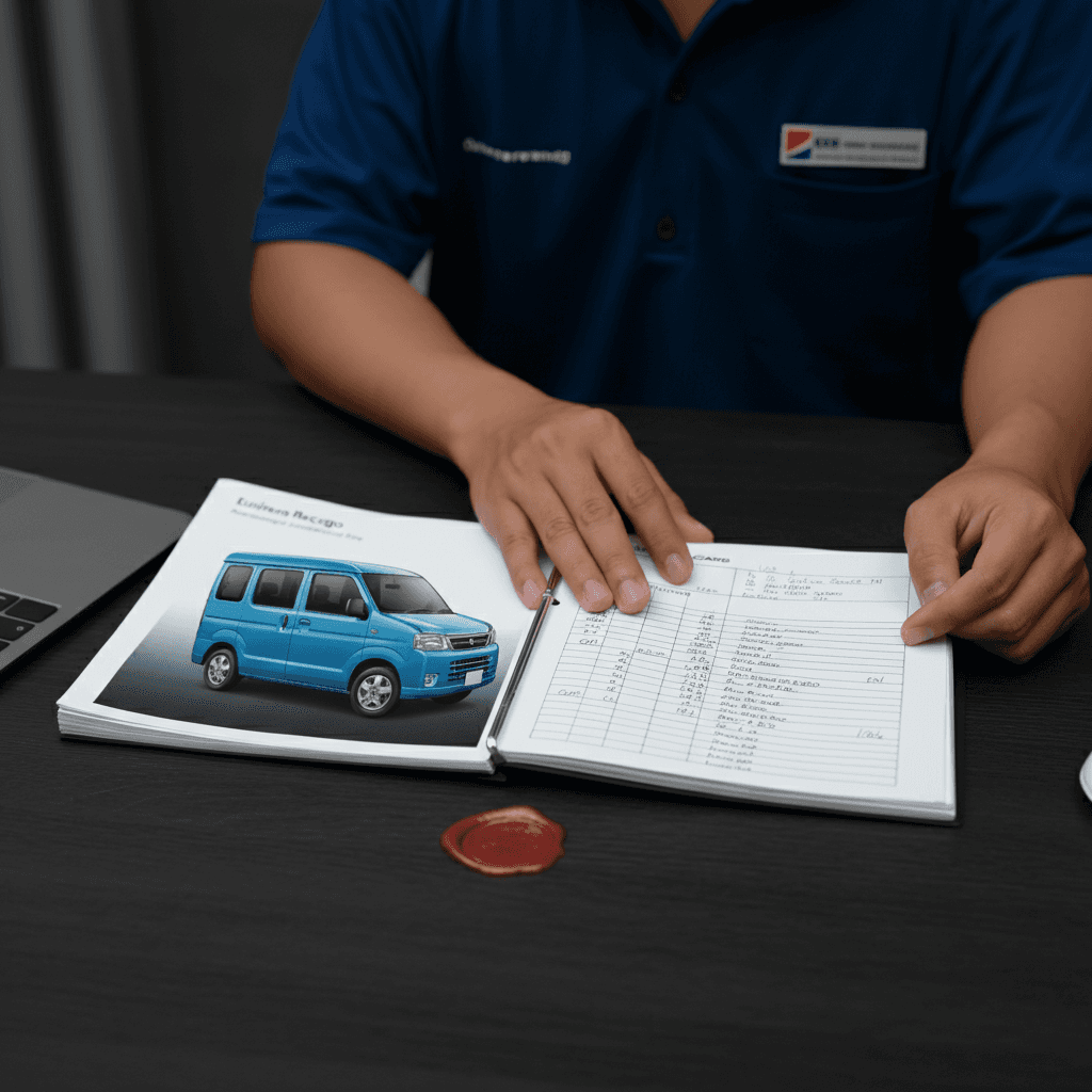 ユーノスカーゴの整備記録簿に定期点検(12ヶ月・24ヶ月)の履歴が全て記載されていれば「管理の行き届いた車」と高評価。特にエンジンオイル交換履歴は重要で+6~9万円の効果。