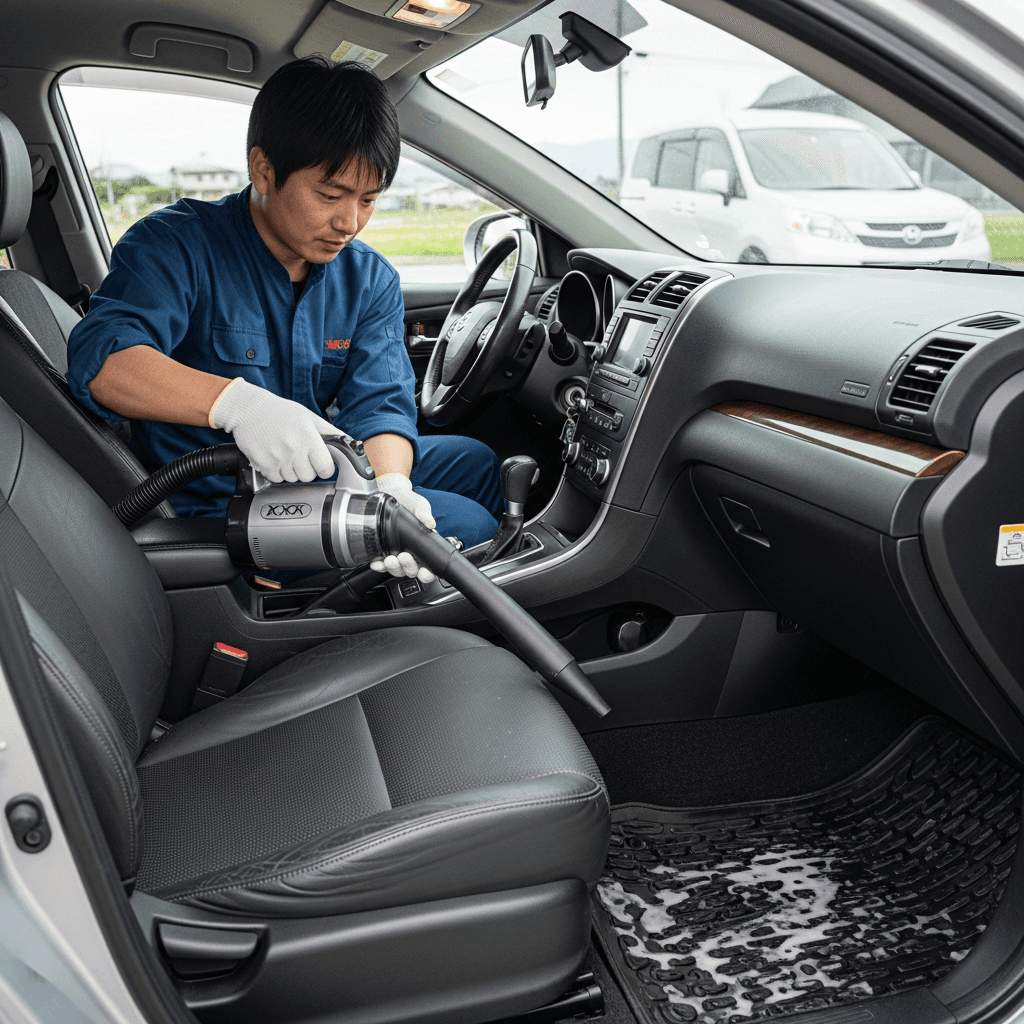 EX40は第一印象が査定の8割を決めます。シート隙間のゴミ除去、マット洗浄、樹脂パーツ艶出しで新車級の清潔感に。特に臭いゼロなら「禁煙車」扱いで+5~8万円UP。