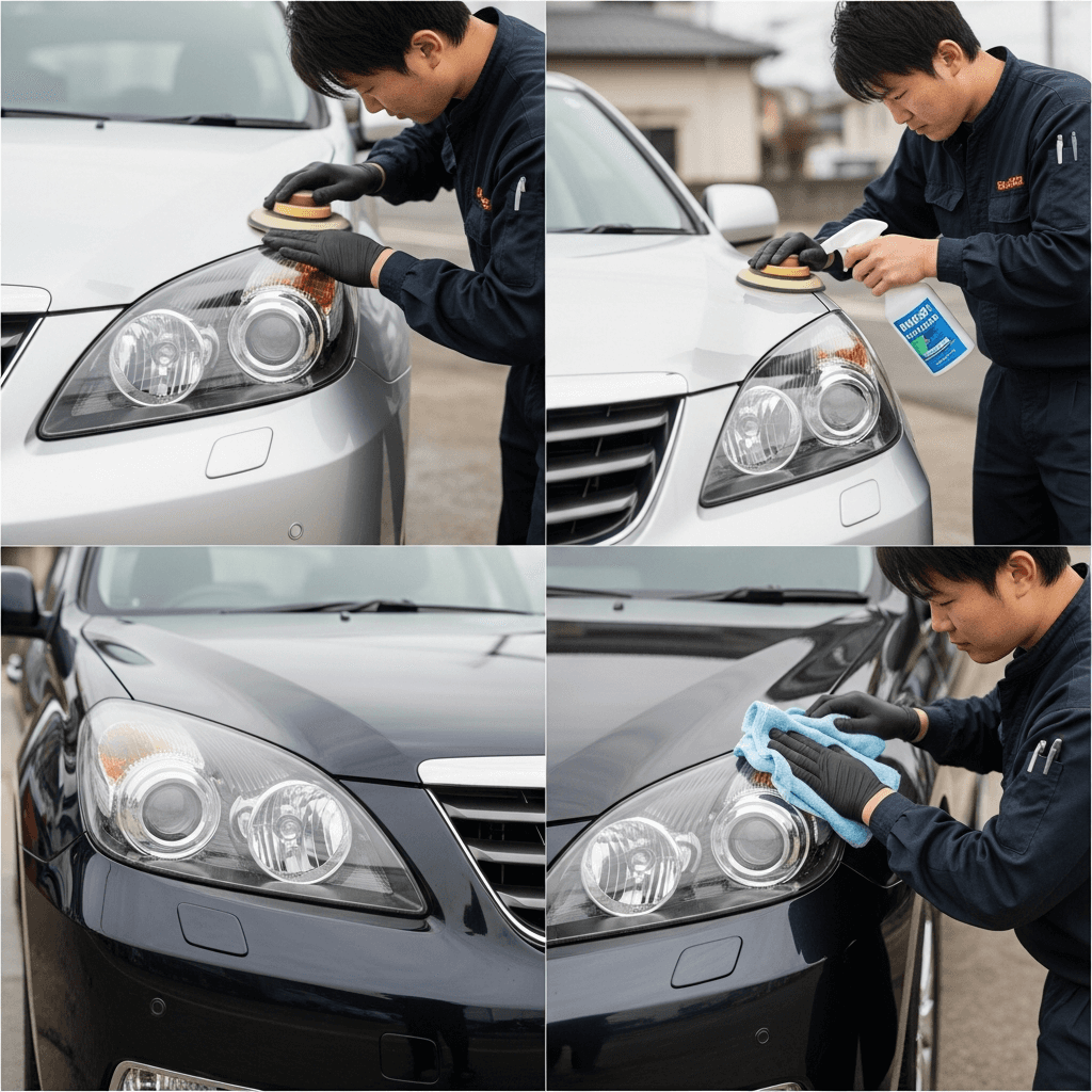 EX40はヘッドライトの黄ばみとボディの鉄粉が第一印象を損ねます。研磨+鉄粉除去クリーナー+ワックスで輝きを取り戻せば「程度良好」と判断され+4~7万円の効果。