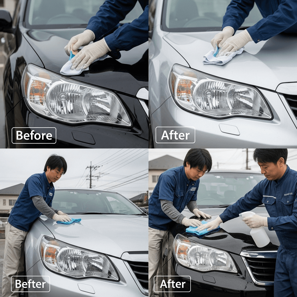 エクシーガクロスオーバー7はヘッドライトの黄ばみとボディの鉄粉が第一印象を損ねます。研磨+鉄粉除去クリーナー+ワックスで輝きを取り戻せば「程度良好」と判断され+4~7万円の効果。