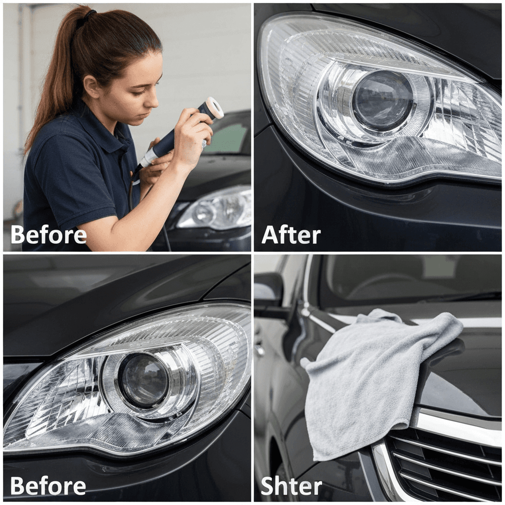 ヘッドライト黄ばみ除去+ボディ鉄粉除去で輝き復活!