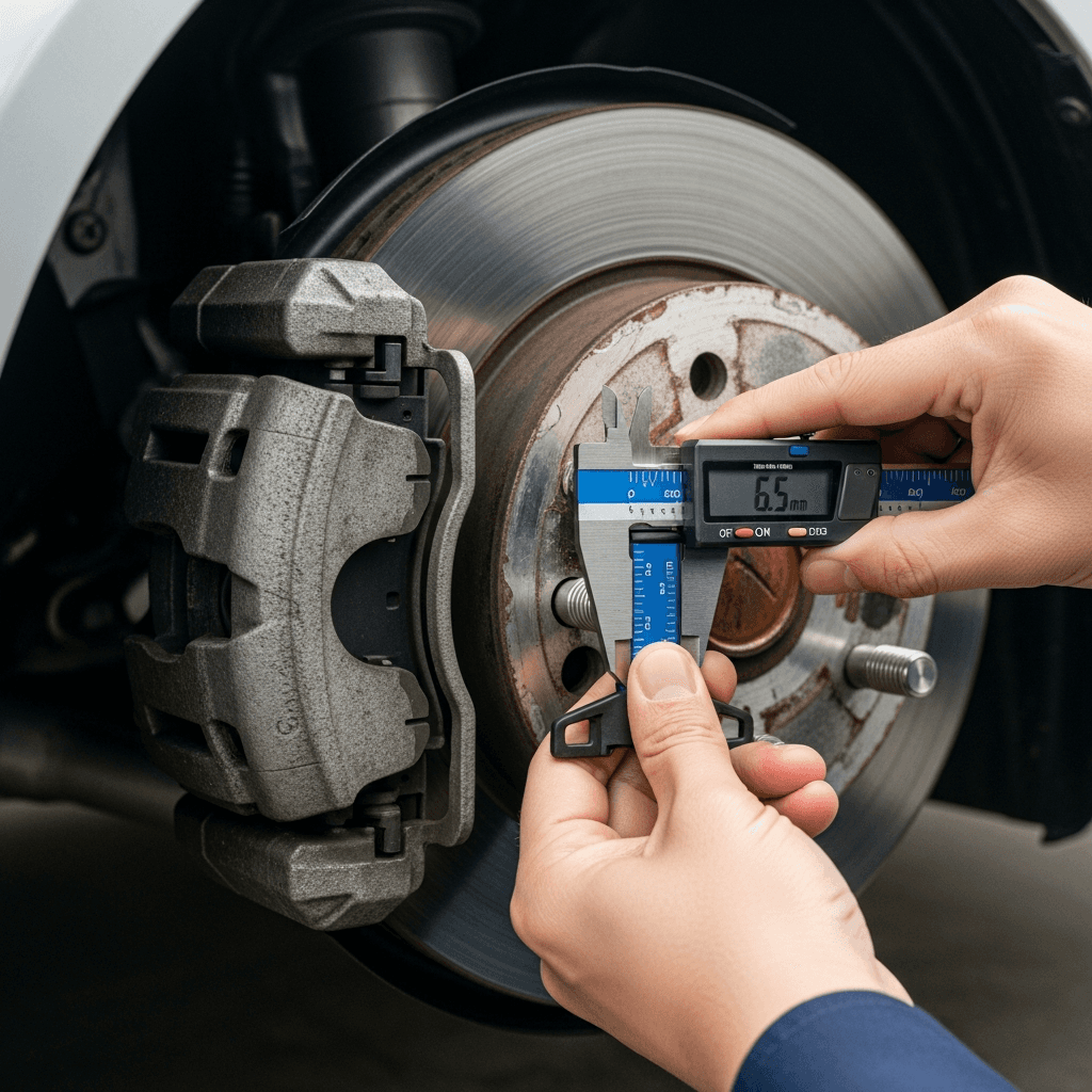 スポーツカーはブレーキとタイヤが査定の最重要項目。パッド残量6mm以上、タイヤ溝5mm以上を写真+ノギス測定値で証明すれば、「走行性能良好」の安心感を与え+8~12万円の評価UP。